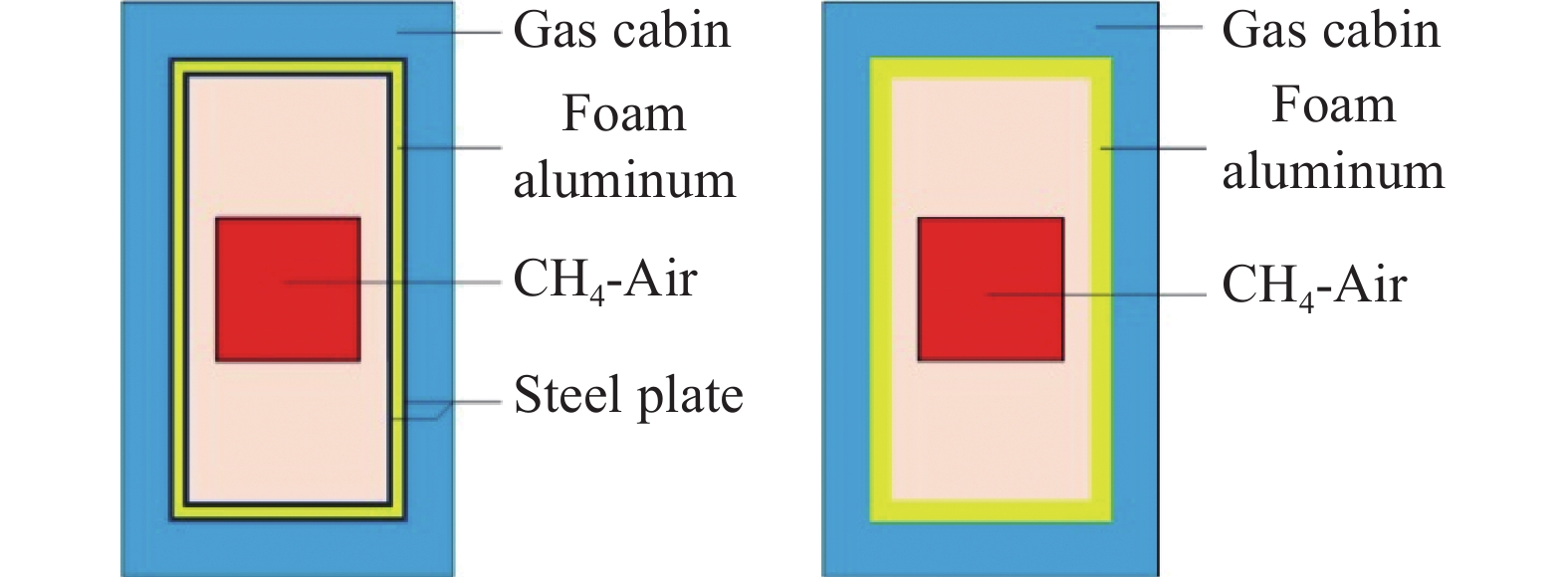 关于结构抗爆问题,国内外学者已进行了广泛的研究,并取得了一些成果,主要研究手段为理论研究、试验研究和数值模拟。在理论研究方面,部分学者提出了基于结构性能设计提高结构的抗爆性能[3-4],国内许多研究也体现了基于性能设计的思想[5-6],但基于性能的抗爆设计研究才刚刚起步,远没有基于性能的抗震设计成熟[7]。也有部分学者对结构抗爆设计进行了实验设计和验证,但由于爆炸试验结果受客观因素影响较大,只能对抗爆罐等小型构件进行试验研究[8-10],存在一定局限性。数值模拟具有成本低、参数可变性强、可控性强等特点,在研究爆炸冲击波对结构影响以及结构抗爆设计等问题上具有天然优势。对于规模较大的建筑结构,实验研究困难,因此采用数值模拟研究的方案较为合理。张秀华[11]对爆炸气体进行了爆炸试验研究和数值分析,采用有限元软件分析获得的流体分布图像等与试验结果基本一致,验证了流固耦合分析气体爆炸的合理性。李忠献等[12-13]将泡沫铝作为抗爆材料敷设在隧道内,并通过数值模拟进行计算和分析,研究结果表明泡沫铝具有良好的缓冲吸能作用,是提高地铁隧道抗爆能力的一种有效措施。Goel[14]、夏志成[15]等运用LS-DYNA,研究了泡沫铝和泡沫铝夹芯结构在爆炸冲击波作用下的减爆吸能效应,结果表明,与未有金属泡沫板相比,添加泡沫铝和泡沫铝夹芯结构的板体有更好的抗冲击和吸能能力。Dharmasena[16]、张旭红[17]、杨德庆[18]等通过数值模拟研究了新型蜂窝防护结构,研究结果表明蜂窝材料可以有效提高结构的抗冲击性能。目前,对于结构的抗爆设计以及研究,主要采用内衬多孔材料的方法,而在诸多多孔材料中泡沫铝材料的发展和应用最广。