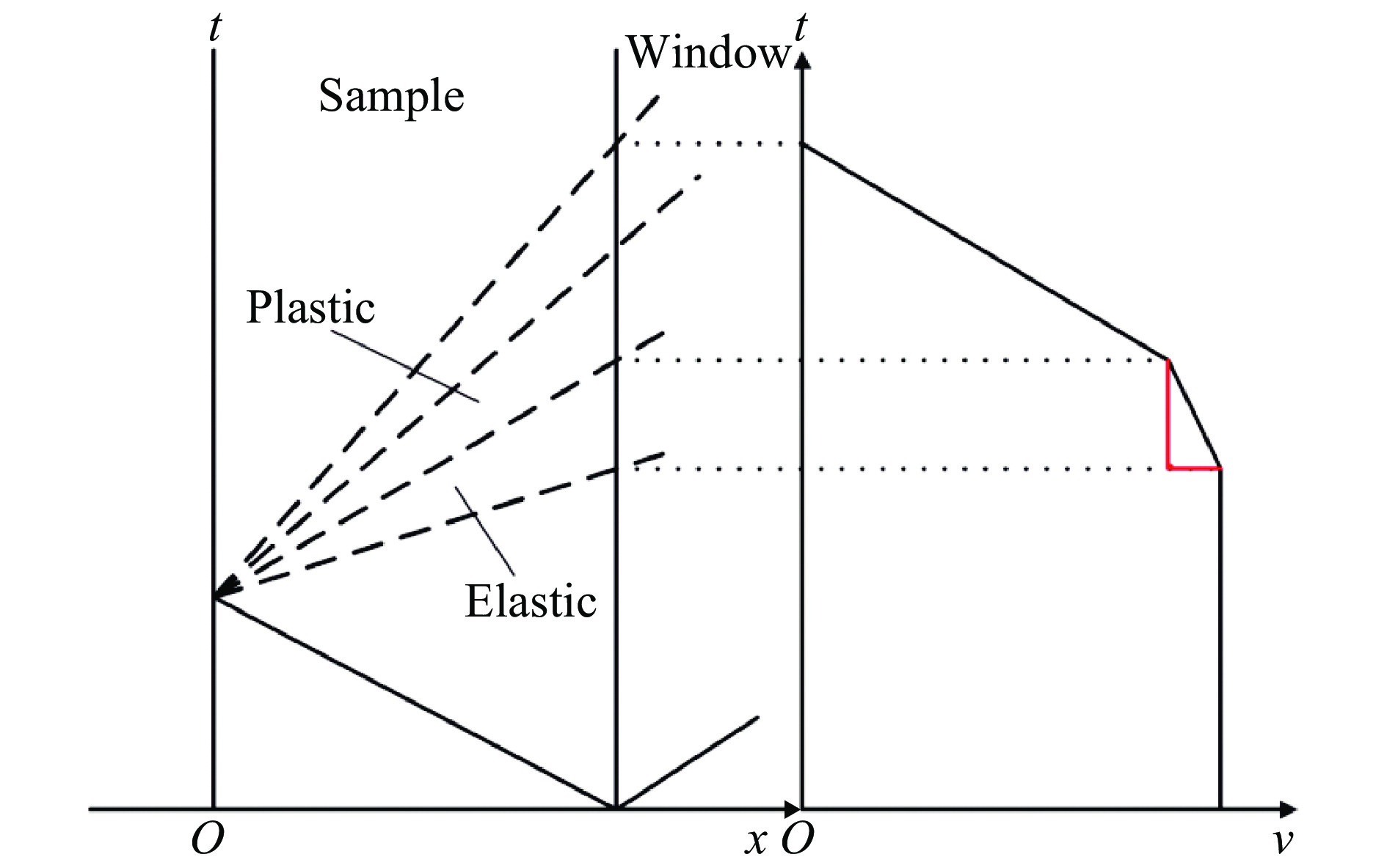 式中:h为传播距离,G为剪切模量,$\dot \gamma $为塑性应变率,${c_{\rm l}}$为纵波声速。(2)式表明,冲击波传播过程中,塑性变形引起的能量耗散导致材料的雨贡纽极限随传播距离衰减。