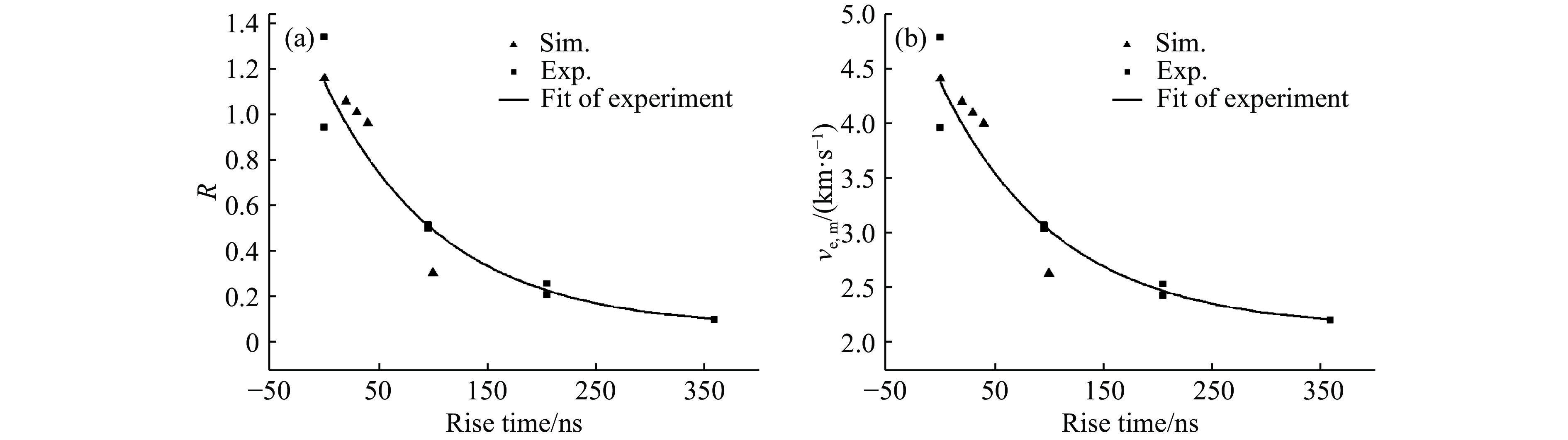 为进一步理解衰减波形对微射流的影响规律,邵建立等[47]通过活塞速度历史模拟了不同冲击波形加载情况。结果表明,随着衰减速率的增加,微射流质量呈现先增加后减小的趋势,这一变化正是由于衰减冲击下微层裂的发生,见图9。图9(b)中左侧纵坐标
