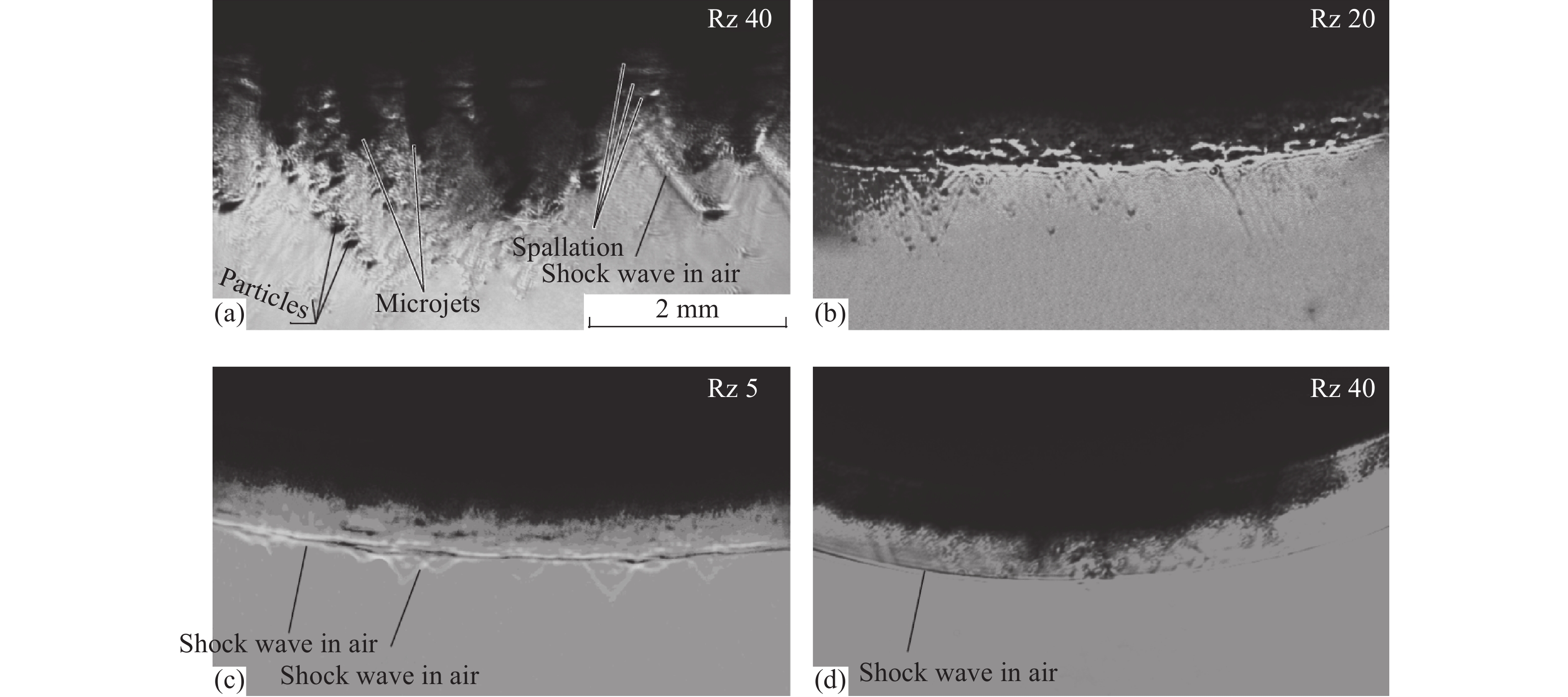 (3)表面几何形貌和加载波形的复杂相互作用。冲击波与粗糙表面的相互作用实际上是一个三维或者准二维问题,在衰减冲击条件下可出现复杂的表面拉应力区,这会影响甚至改变近表面物质的破坏模式。这对于理解微喷射全局状态,尤其是低速喷射物的分布十分重要。
