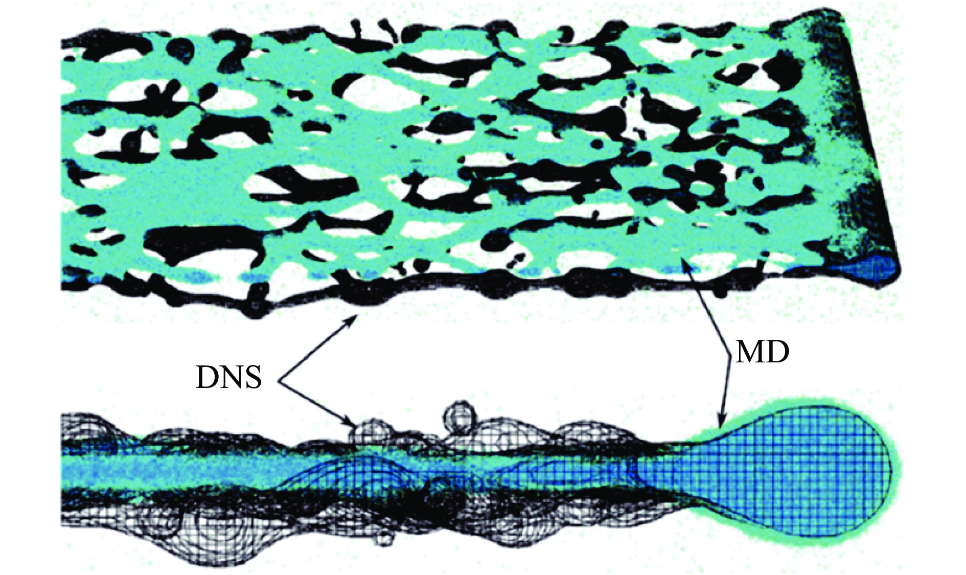 2017年,Buttler等[29]对微喷射现象的研究历史按年代作了简要回顾,指出微喷射物理是一个年轻的研究领域,但近年来已取得巨大进步,喷射物产生的物理机制至今已完全探明。最近,王裴等[30]总结了其课题组近年来在微喷射及喷射混合方面的理论研究进展。本文分别从微观分子动力学(Molecular Dynamics, MD)和宏观连续介质力学(Continuum Mechanics, CM)层次,回顾微喷射现象国内外数值模拟研究进展及相关建模工作,归纳了当前微喷射数值模拟研究仍存在的一些难点问题。