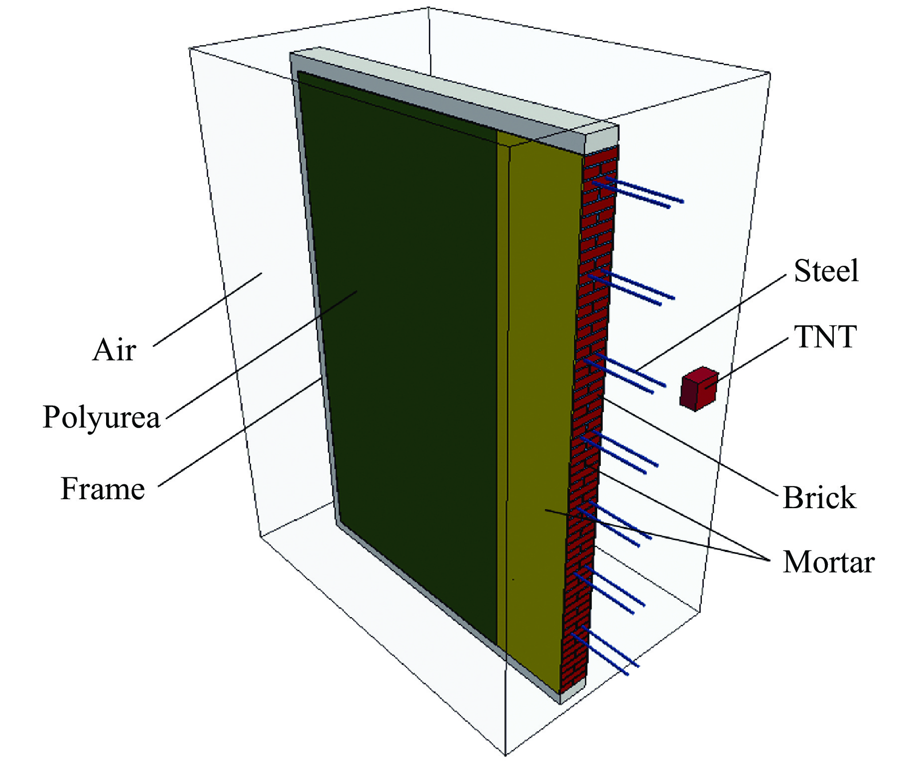 砌体填充墙作为最常见的建筑构件被广泛应用于建筑物外立面围护或内部空间的非结构分割。然而,砌体填充墙因其自身材料结构的外载荷抗力不足,在爆炸冲击波作用下极易出现裂缝、破坏和倒塌,产生破片飞屑,并造成严重的人员伤亡和财产损失[1–2]。因此,研究如何提高砌体结构的抗爆性能具有重要意义。