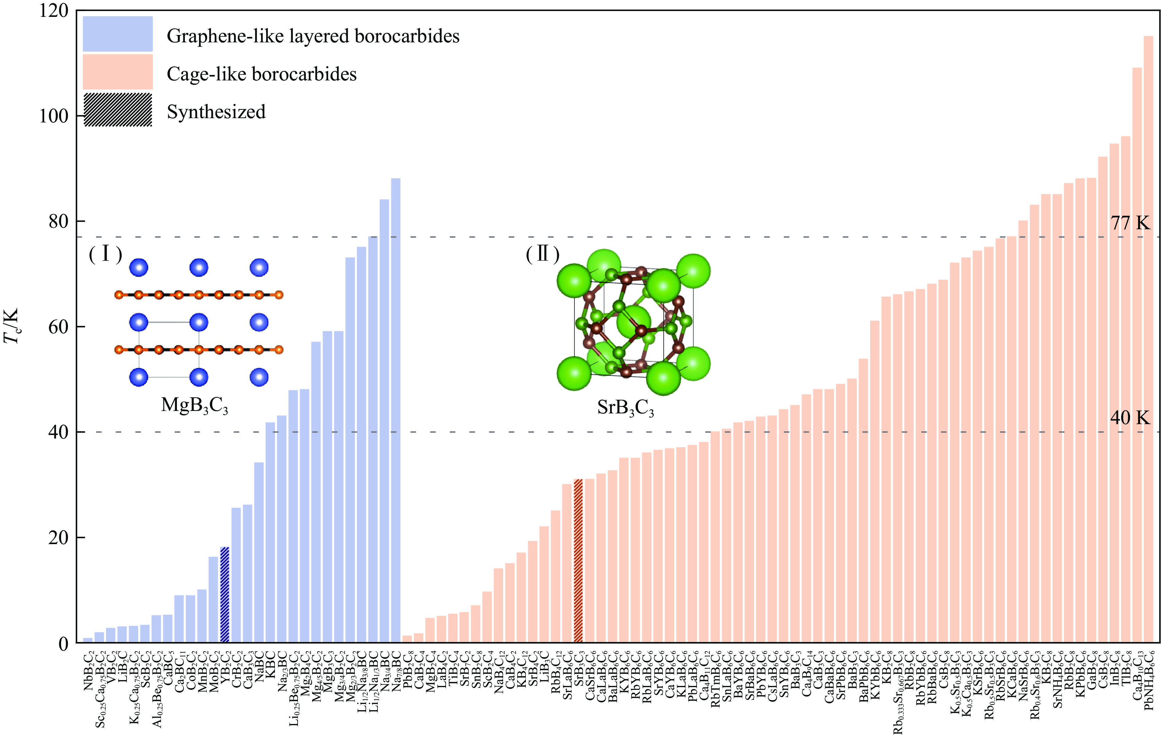 Figure 9.  Boron-carbon-based superconductors under gigapascal pressures[1618, 95114] (McMillan-limit 40 K, boiling point of liquid nitrogen 77 K)