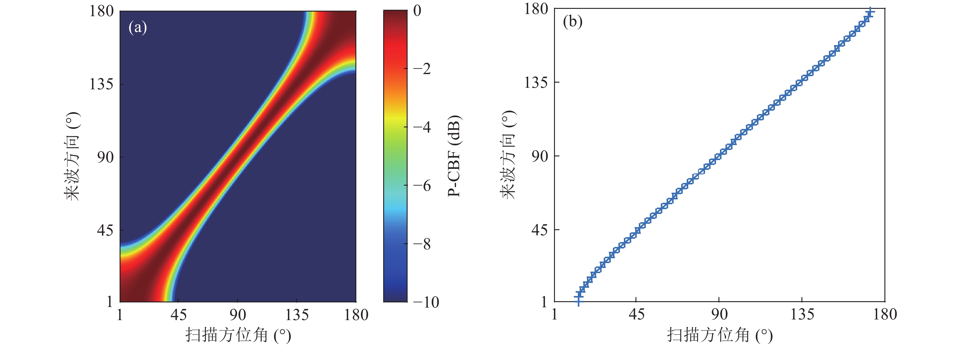 ${{P}_{\text{E}}}(f,\theta ,{N_i})$ , 其中${N_i}$ 为阵元编号,$i = 1,2, \cdots ,N$ ,${{P}_{\text{E}}}(f,\theta ,{N_i})$ 与DOA信息有关, 与距离有关, 则有其中,