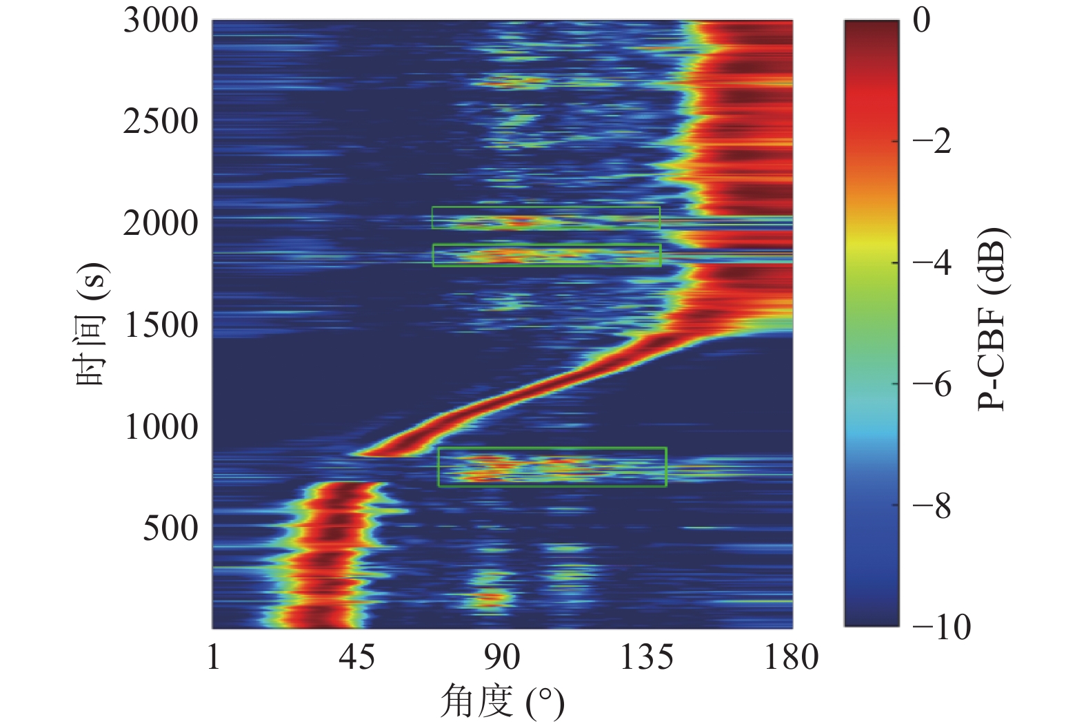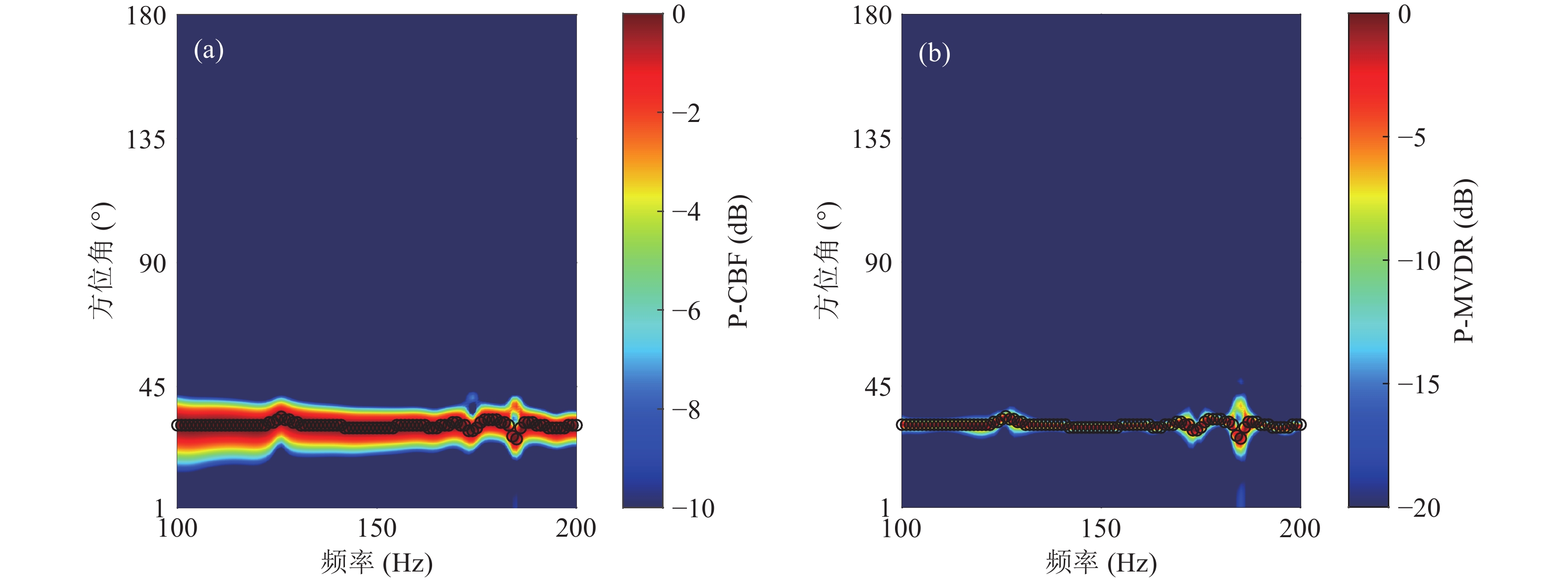 本文实测数据处理方式与仿真数据归一化方式保持一致, 根据阵元域接收声场数据计算出互谱密度矩阵: