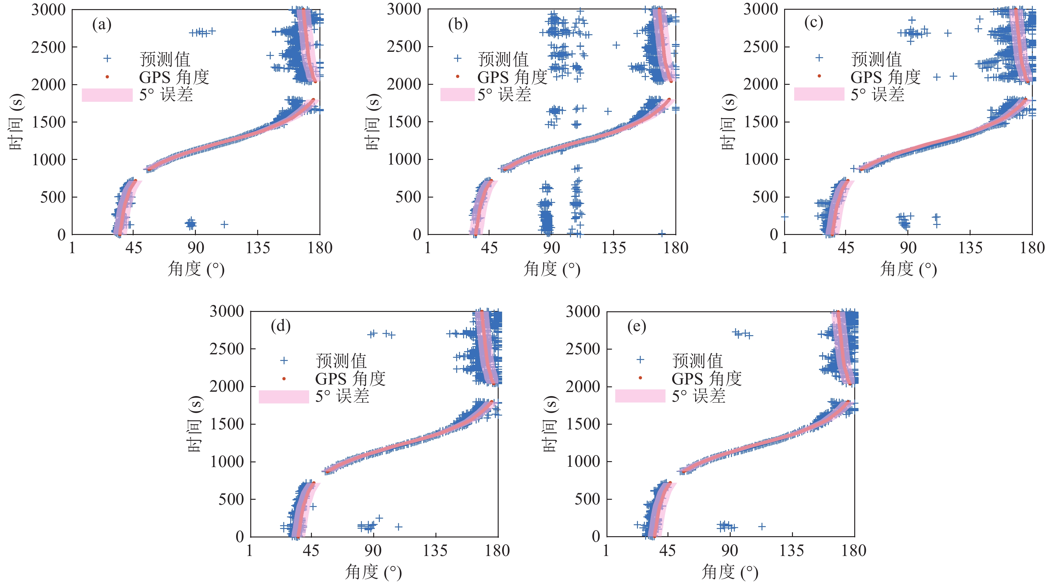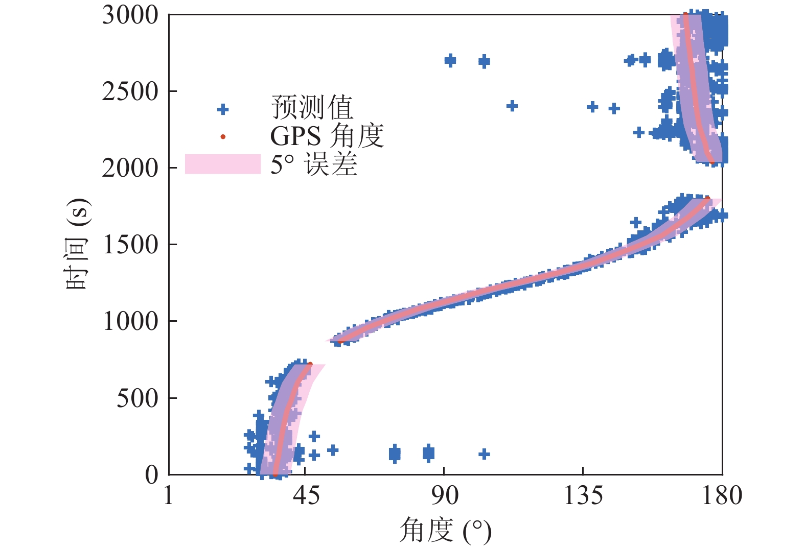 ${N_{{\text{test}}}}$ 是待估计样本总数,$\eta (k) = 1$ 时表示第$k$ 个样本的DOA被有效估计出。${\theta _{rk}}$ 是第$k$ 个样本根据GPS计算出的真实DOA,${\theta _{ek}}$ 是第$k$ 个样本根据DOA估计算法预测出的DOA。 -
