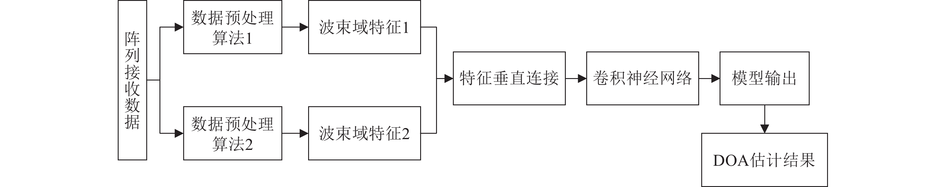 本文首先探讨了传统DOA估计算法的特点及不足, 给出数值仿真示例分析; 然后结合CNN, 引入特征融合技术, 利用水平阵实现了目标DOA估计, 提出了CNN-CBF、CNN-MVDR和基于CBF和MVDR两种特征融合的CNN-Ⅱ三种估计算法。针对CBF和MVDR两种波束域特征展开了数值仿真分析, 在不同阵元间隔及不同信噪比下讨论CNN模型的DOA估计性能; 利用海试数据对本文算法进行了性能评价。