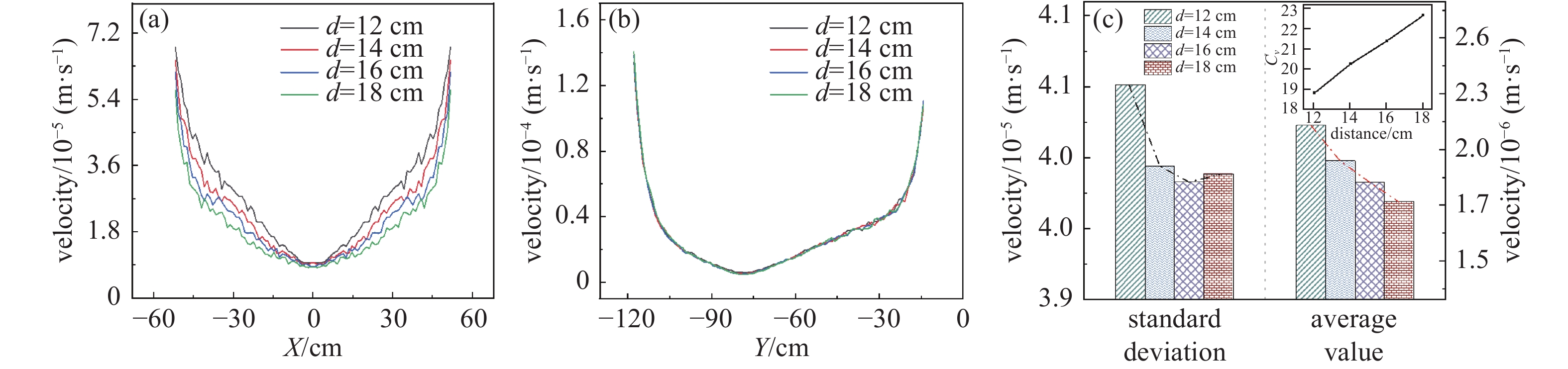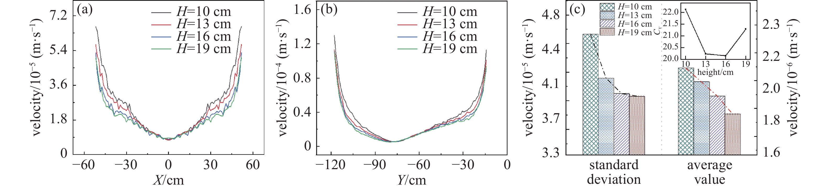$ {C_v} $ ,其计算公式如式(5)所示,其中$ s $ 为样本标准差,$ \bar v $ 为平均流速。下面详细分析热丝根数、热丝间距和热丝距基底高度等工艺参数对HWCVD热流场的影响。 -