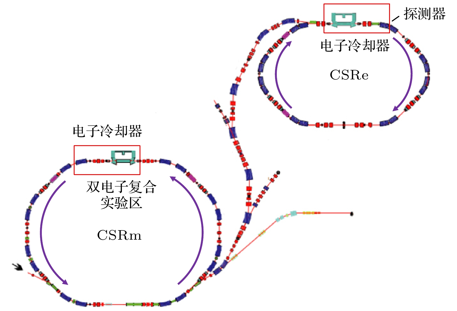 高电荷态离子(highly charged ions, HCIs)精密谱学一直是原子物理的前沿研究方向之一[1,2]. 双电子复合(dielectronic recombination, DR)是一个共振过程, 精确测量双电子复合共振结构可以解析出高电荷态离子的激发态能级, 进而开展如量子电动力学检验[3,4]、同位素移动测量[5–7]、超精细诱导跃迁寿命测量[8]等重要研究. 随着电子冷却技术的产生和发展[9,10], 离子冷却储存环逐渐成为继核聚变反应装置Tokamak和电子束离子阱之后, 研究电子-离子复合精密谱学最理想的工具之一. 相比其他实验方法, 重离子冷却储存环可以通过冷却技术获得高亮度、高品质离子束, 并能长时间储存和操控离子, 从而为DR谱学实验提供了极高的能量分辨(meV)、极大的能量调制范围(meV—keV)、纯的单一电荷态离子以及绝对测量等独一无二的实验条件[11,12]. 过去十多年, 人们在重离子储存环上开展了一系列高电荷态离子的双电子复合精密谱学实验研究, 包括德国TSR上的类锂Sc18+离子的超精细分裂[8]、德国ESR上的类锂重离子U89+, Pb79+, Au76+精细结构[4]、瑞典CRYRING上的类铜Pb53+的超精细分裂等[3], 基于储存环的双电子复合谱学实验也因此正在发展成为新一代的精密谱学测量方法——电子离子共振谱学技术. 此外, 精确的双电子复合速率系数是天体物理和聚变等离子体模型中最基本的输入参数, 双电子复合过程伴随的退激辐射往往可以作为诊断等离子体中电子温度和密度的有效探针[13,14].