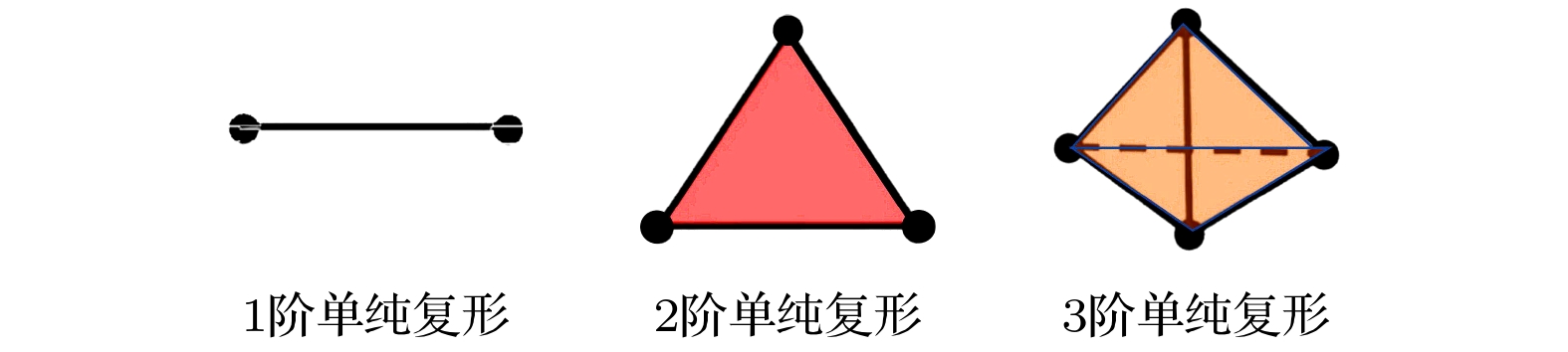 • 图 1  无向单纯复形高阶交互作用的结构模体. 分别表示1阶、2阶和3阶单纯复形. 本文研究2阶单纯形, 描述三个节点之间的相互作用