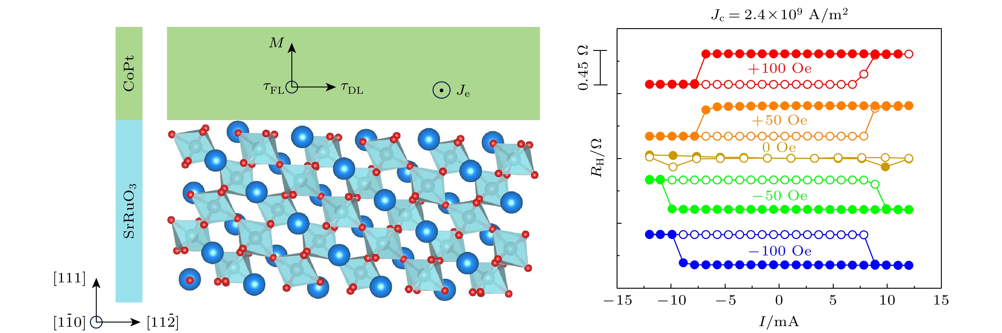 本文聚焦(111)取向的SRO薄膜, 系统探究了晶体取向对SRO/CoPt异质结构SOT性质的影响, 发现(111)取向SRO的SOT效率高达0.39, 是(001)取向的近两倍, 自旋霍尔电导率则从4.68×104提高到2.19×105 $ {\mathrm{\hslash }} $/(2e) Ω–1·m–1. 同时, (111)SRO/CoPt器件实现了低至2.4×1010 A/m2的临界翻转电流密度. 这些结果证明了晶面取向调控是一种行之有效的SOT优化策略, 为进一步提高自旋电子器件的性能提供了新的思路.
