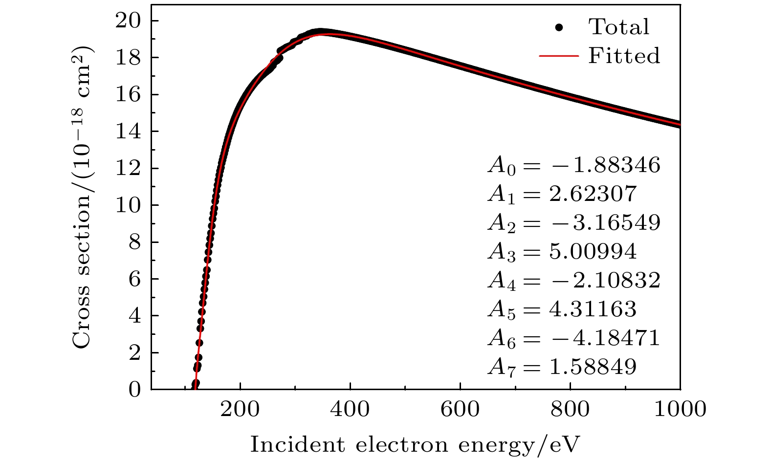 其中, $ \varepsilon $(eV)是入射电子能量, I0 (eV)为电离势, Ai为拟合系数, 获得的拟合系数展示于图8中.