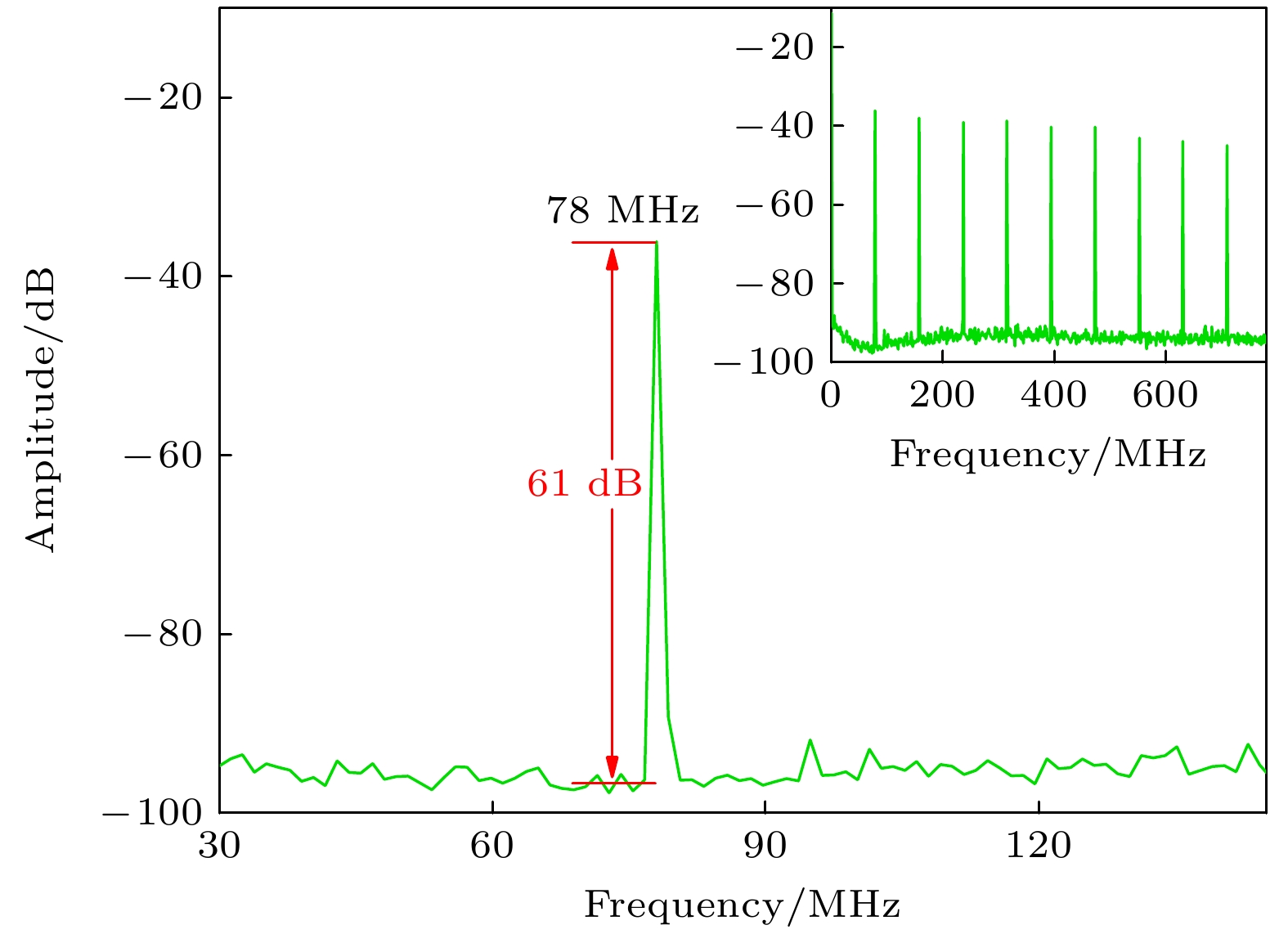 图 7  78 MHz锁模SDL射频频谱图