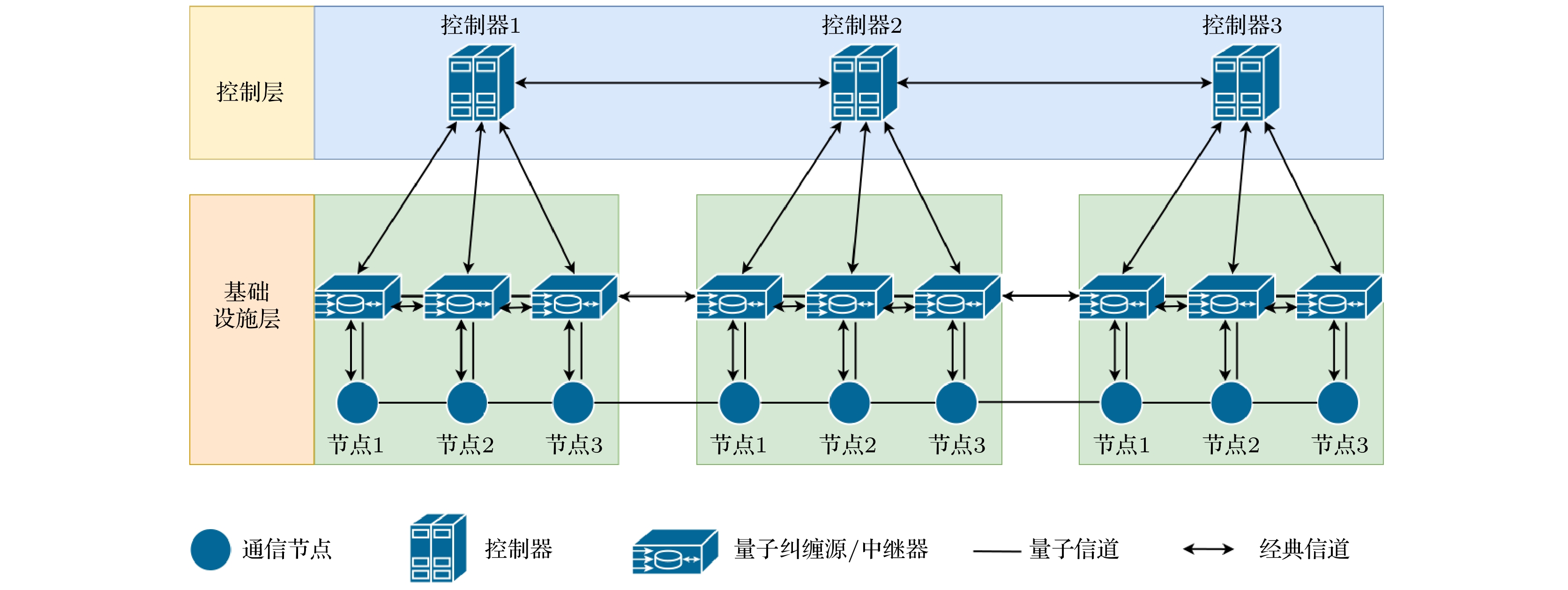 本文根据量子网络的特点, 将网络结构简化为两层——控制层和基础设施层, 如图4所示.