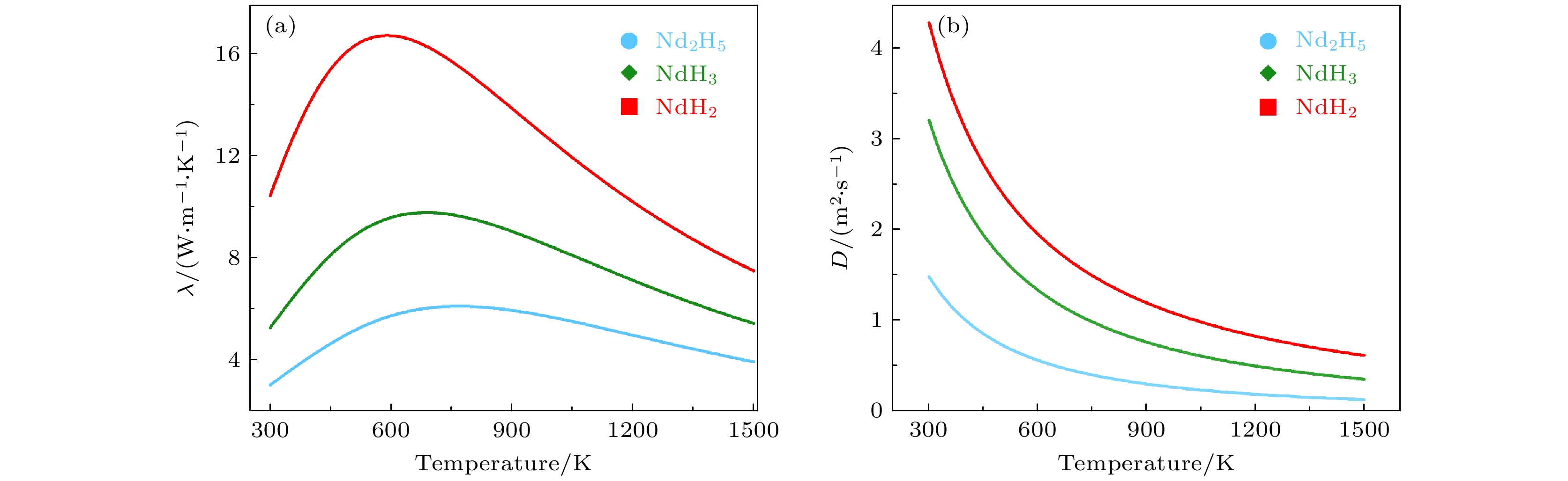 钕氢化物作为氢化反应过程中的产物, 其热导率与热扩散系数等热输运性能决定了材料对热量传导与温度变化的响应能力, 从而对氢扩散行为及热场调控产生影响. 计算该类热力学性质, 可以为回收过程中的温度场设计与效率优化提供理论支持. 热导率(