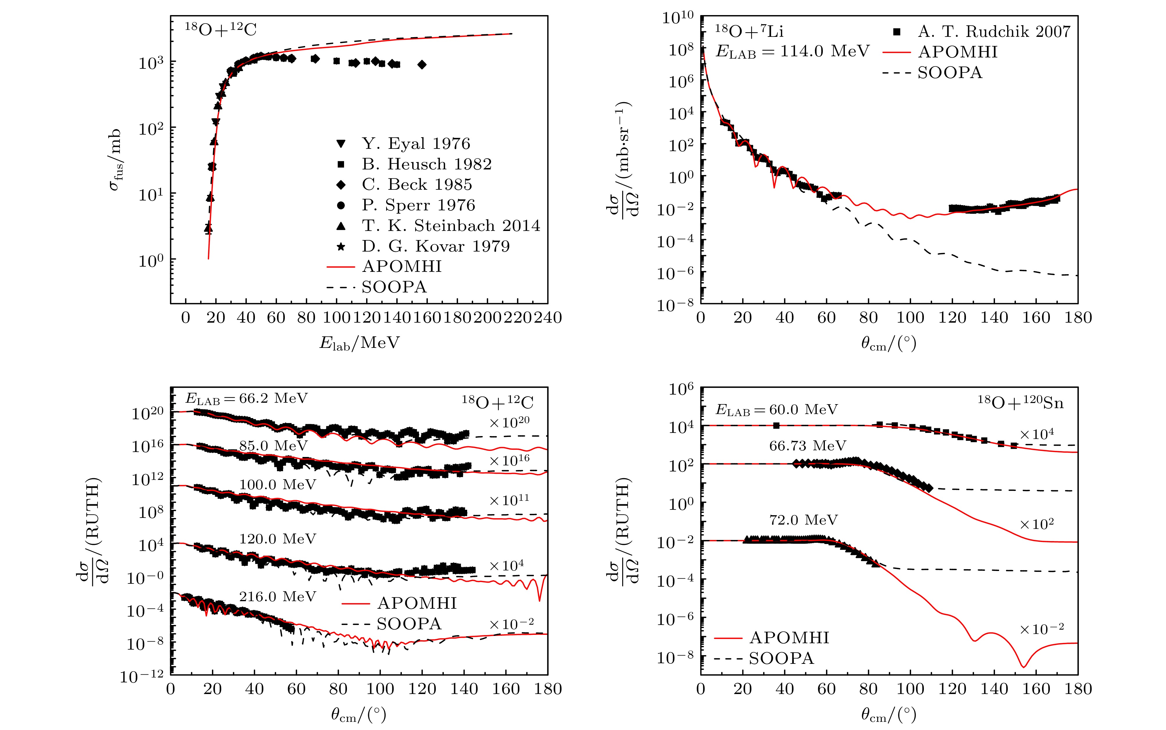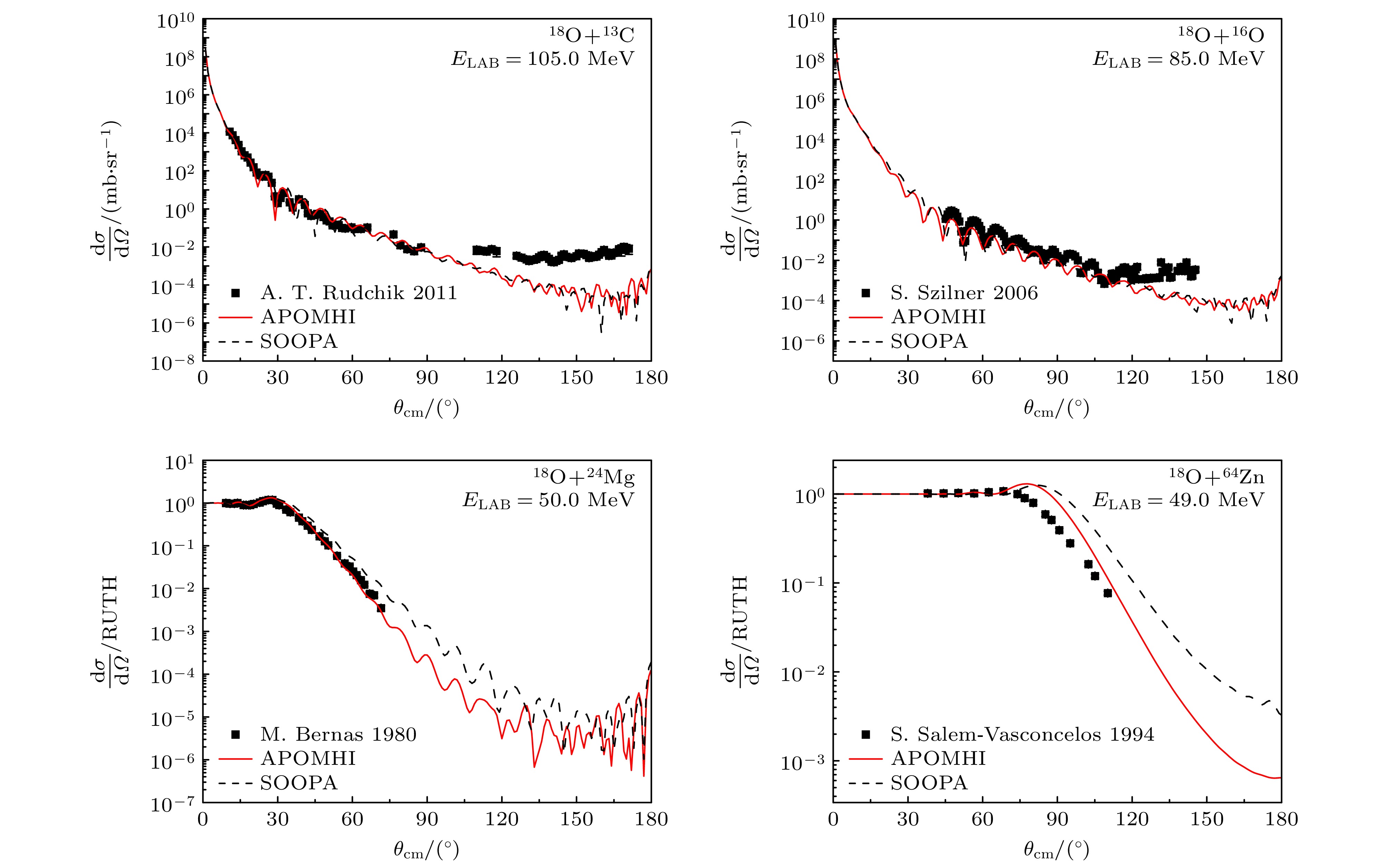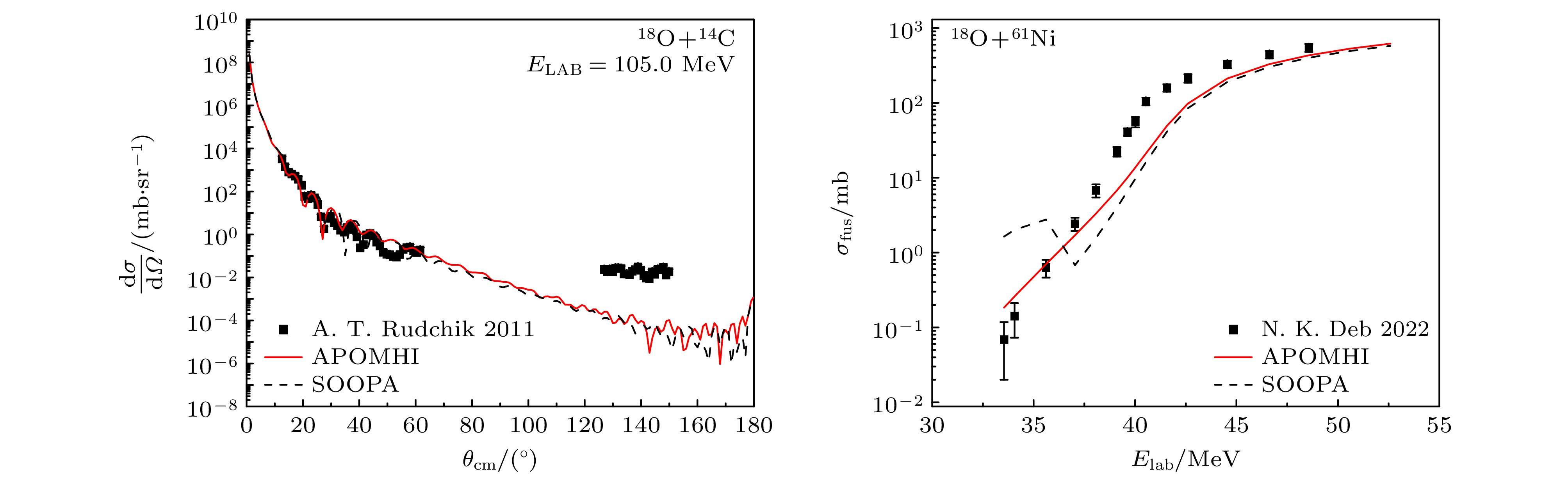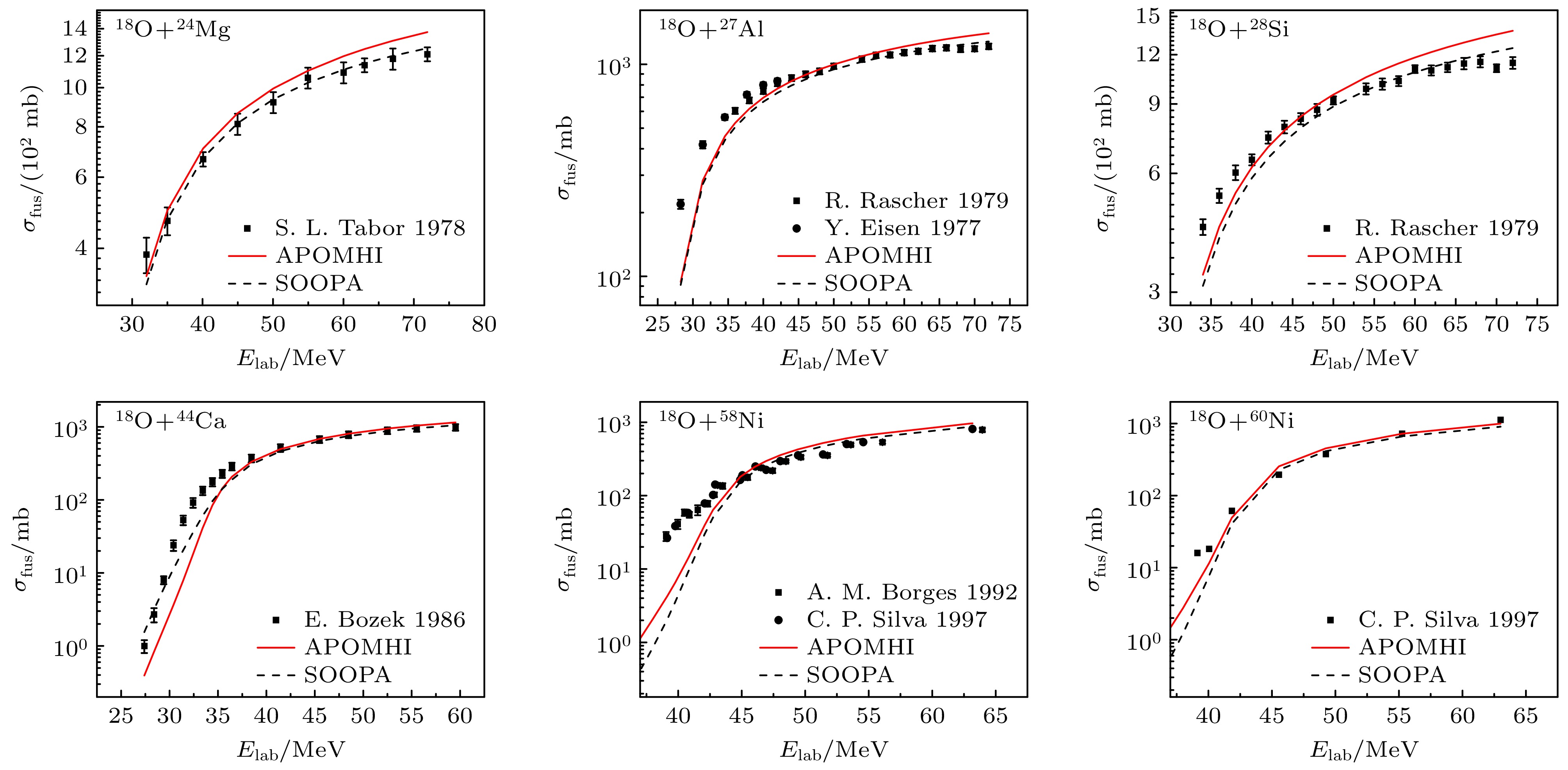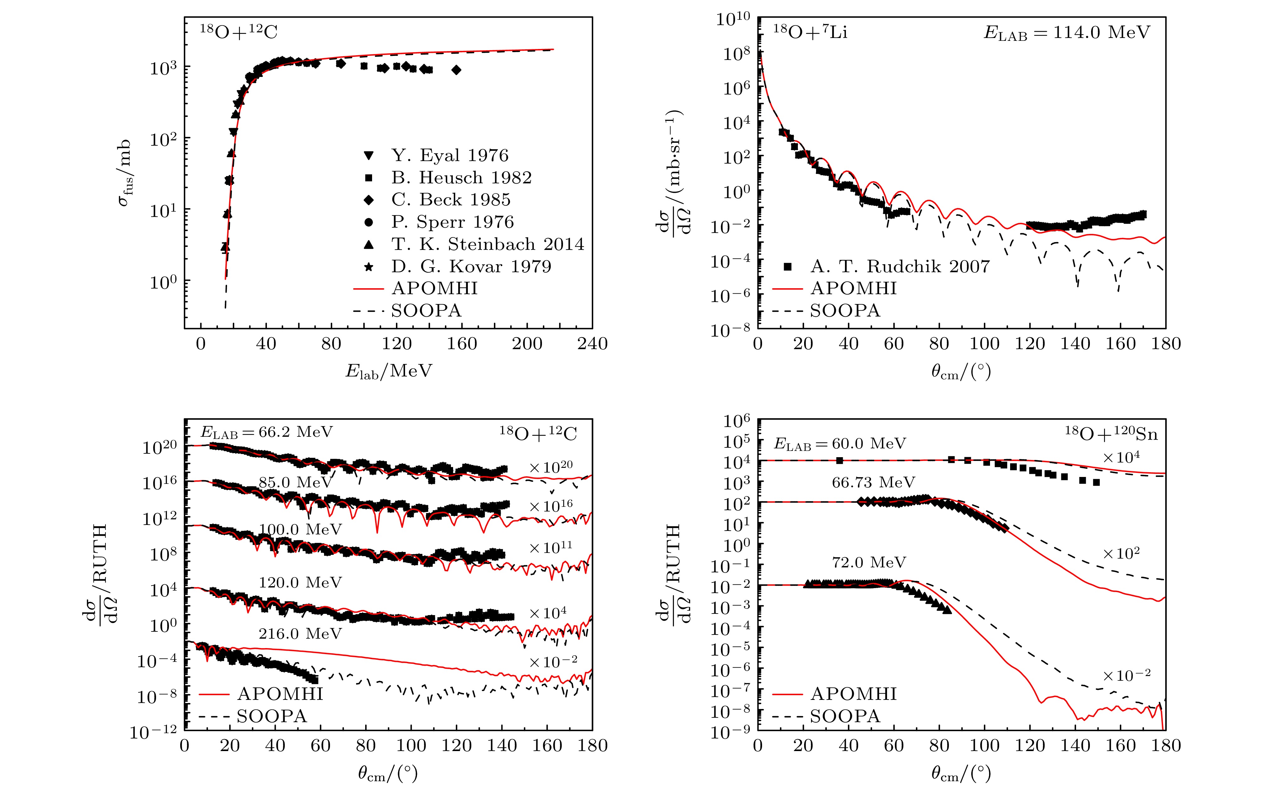 APOMHI依然假设弹靶为球形核, 也不考虑两个核的激发态. 弹靶相差不大, 弹核可以轻于或重于靶核, 但二者不能为全同粒子. 利用该光学模型, 可以计算重离子碰撞的弹性散射角分布以及复合核吸收截面. 为验证APOMHI的适用性, 本文进一步以18O作为弹核的系列重离子碰撞反应为例, 通过拟合实验数据, 获取了相应反应的普适光学势. 同时, 作为比较, 本文也利用SOOPA在同样实验数据的基础上做了类似的计算.