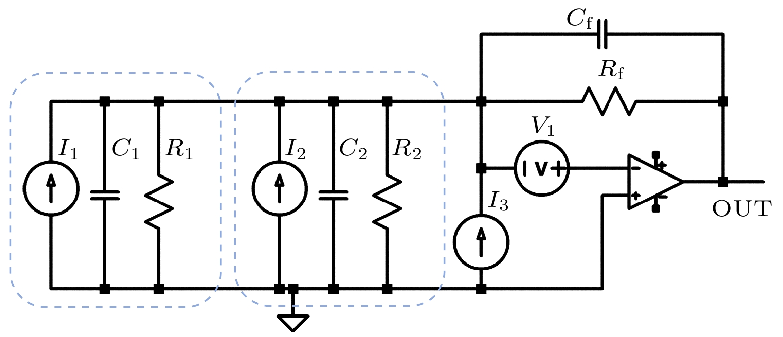 (7)式表明, 热噪声与电阻值呈正相关. 在实际电路中, 为了抑制热噪声的影响, 我们采用温漂系数为0.2 ppm/℃(1 ppm = 10–6), ${R_{\text{f}}}$= 10 kΩ的金属箔电阻. 在T = 25 ℃时, 计算得到反馈电阻的电压等效噪声密度为12.8 nV/Hz1/2.