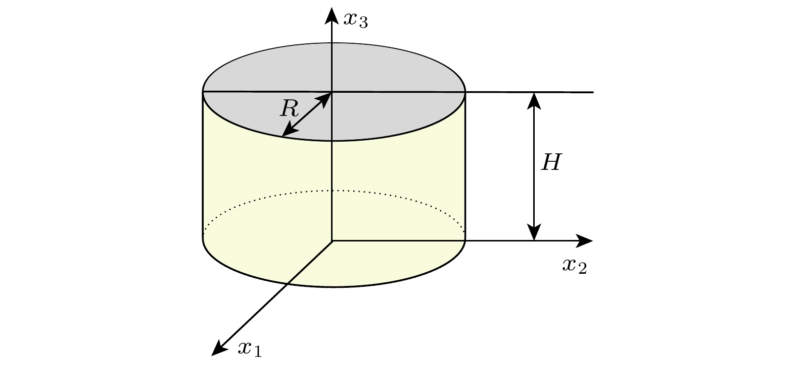• 压电陶瓷的机电耦合特性呈现显著的几何尺寸依赖性. 为克服传统机电耦合系数计算公式的尺寸限制, 本文参考文献[24], 构建了适用于任意长径比的织构陶瓷机电耦合系数解析模型. 以沿[001]C方向(x3方向)极化的圆柱形压电振子为研究对象, 定义长径比$ G = H/R $, 其中H为沿极化轴方向的轴向长度, R为圆柱体径向横截面的半径, 如图5所示.
