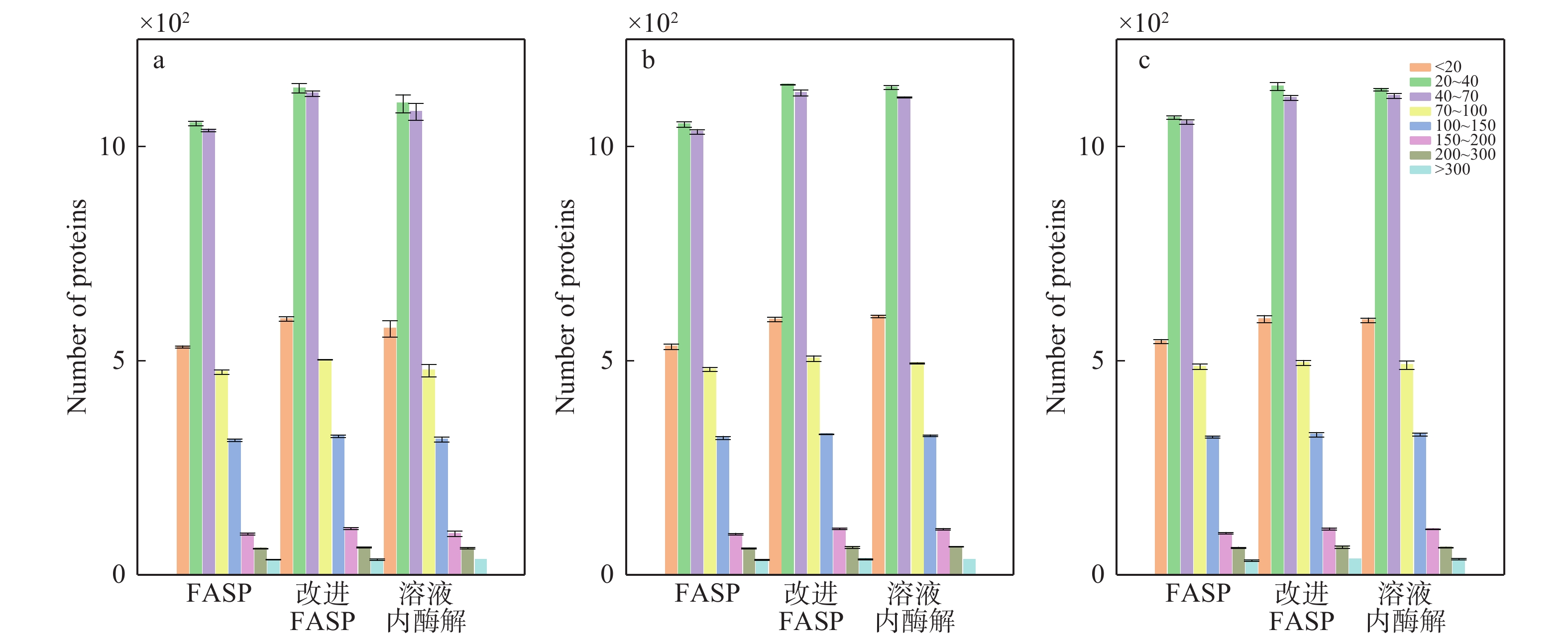 图 11  3种样品前处理方法鉴定蛋白分子质量分布