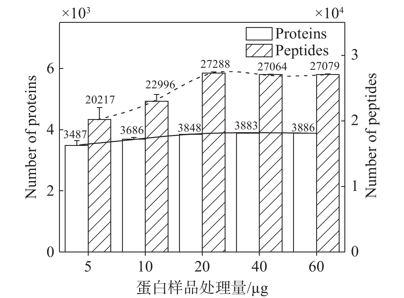 图 12  不同蛋白处理量蛋白和肽段鉴定结果