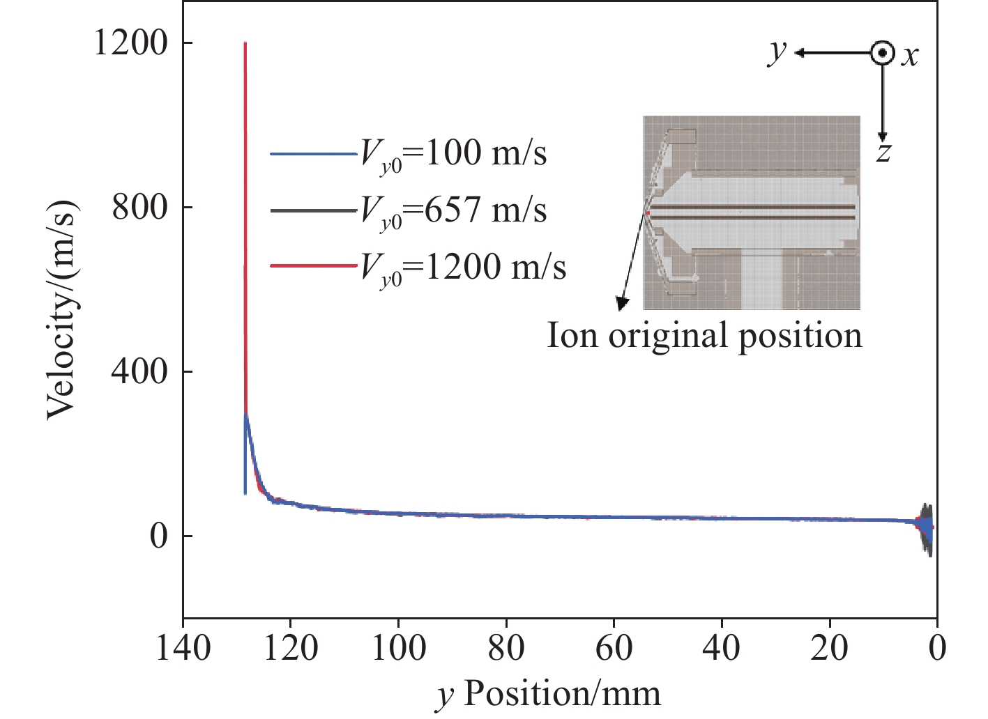 Figure 7.  Velocity distribution of ions with different initial velocities along the y axis