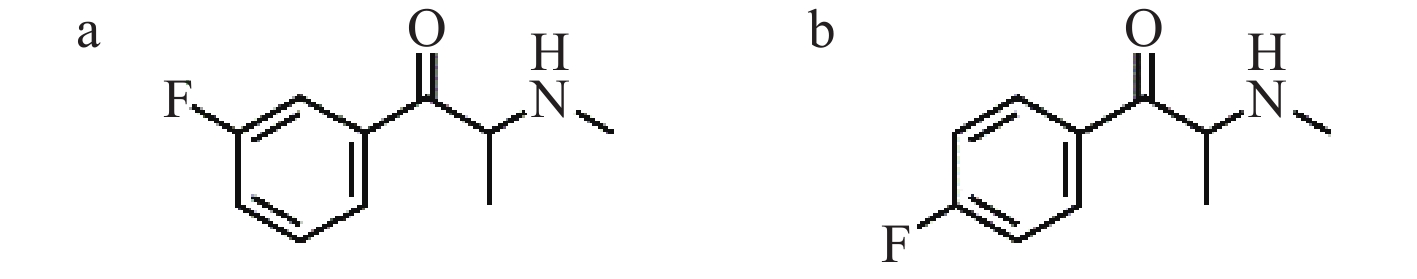 合成卡西酮主要是不法分子通过对卡西酮或甲卡西酮进行细微的结构修饰获得的,因此存在许多结构类似物。4-氟甲卡西酮(4-FMC)是甲卡西酮的氟取代衍生物,是继第一代合成卡西酮4-甲卡西酮之后的第二代合成卡西酮类物质[6],于1952年首次合成,2015年被列管。3-氟甲卡西酮(3-FMC)是4-FMC的位置异构体,其结构示于图1。尽管两者化学性质相似,能产生相似的兴奋和致幻效果[7],但包括我国在内的很多国家尚未对3-FMC进行列管。因此,准确鉴定3-FMC和4-FMC对毒品犯罪案件中毒品鉴定和吸毒认定具有重要意义。