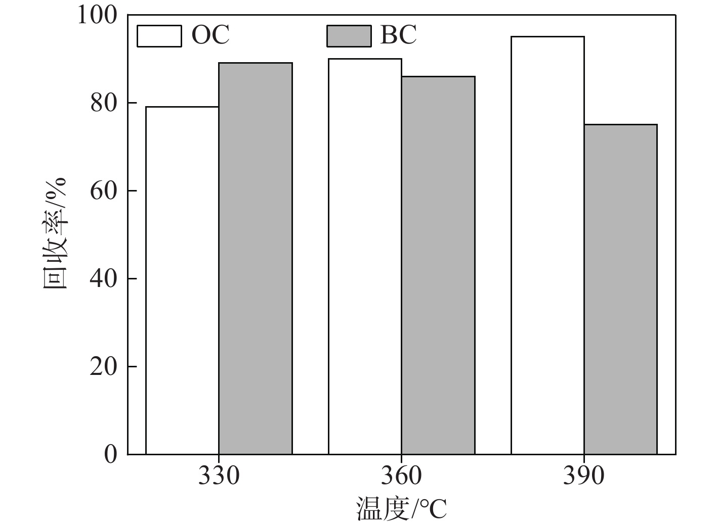 图 3  OC和BC回收率与第一温度区温度的关系