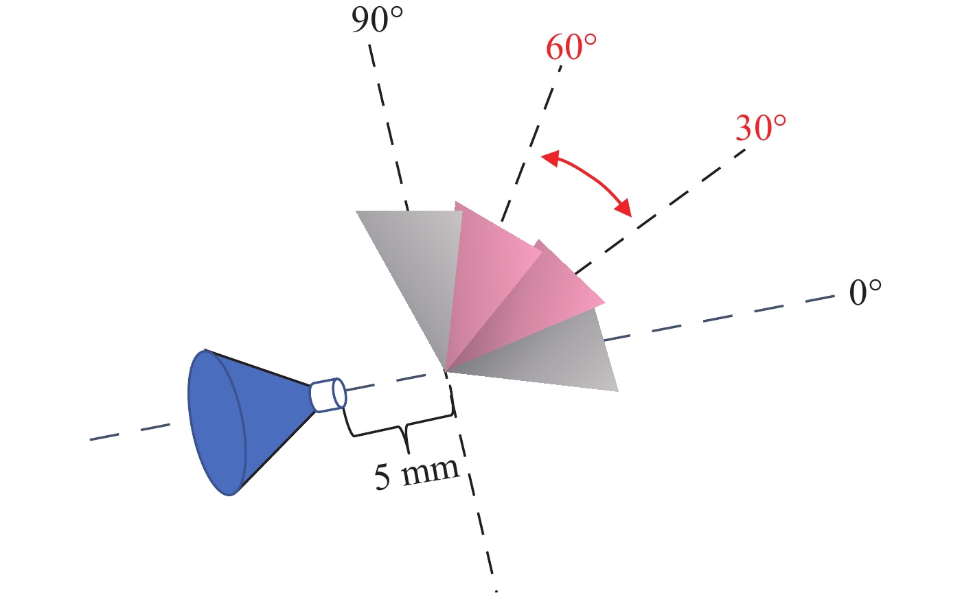 本实验对纸基尖端与质谱口之间的角度进行研究,角度测试范围为0°~90°,在30°~60°范围内检测效果较好,结果示于图5。但考虑到设备和操作的简便性、实用性,以及对实验结果的影响程度,实际检测过程选择的角度为0°。