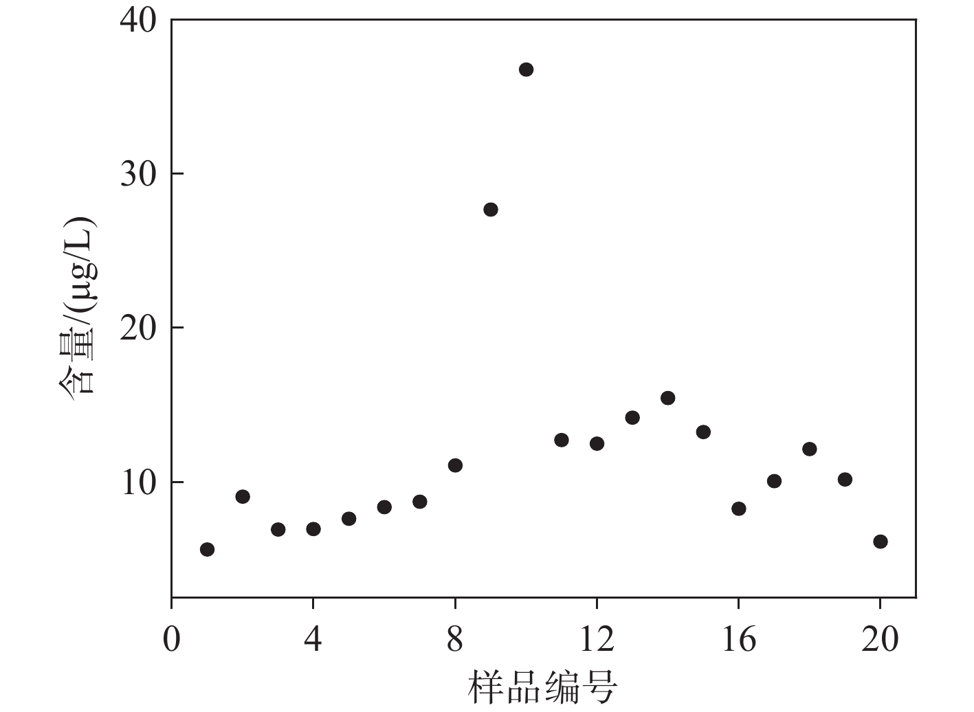 采用纸喷雾质谱法检测20例血浆样本中他克莫司含量,结果示于图8。可知,他克莫司含量范围为5.62~36.75 μg/L,RSD在1.75%~14.41%之间。
