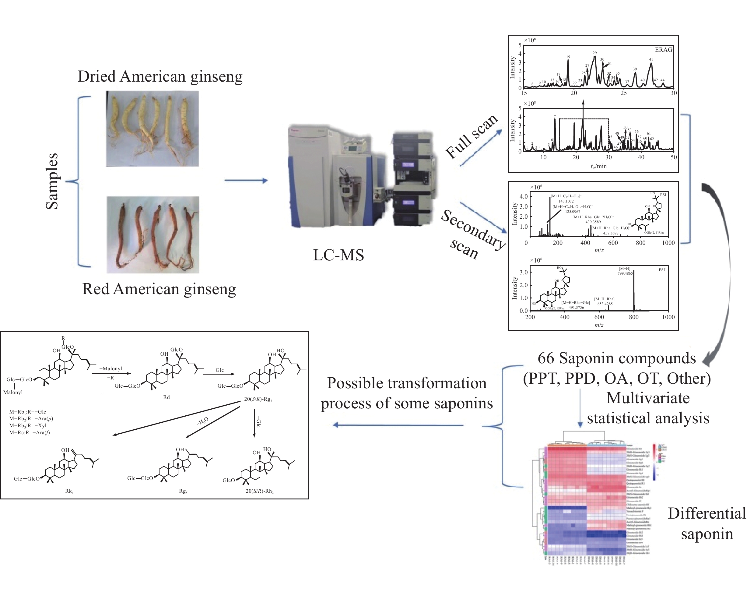 Table 1. Chemical composition information of 66 kinds of ginsenosides in sun-dried American ginseng and red American ginseng