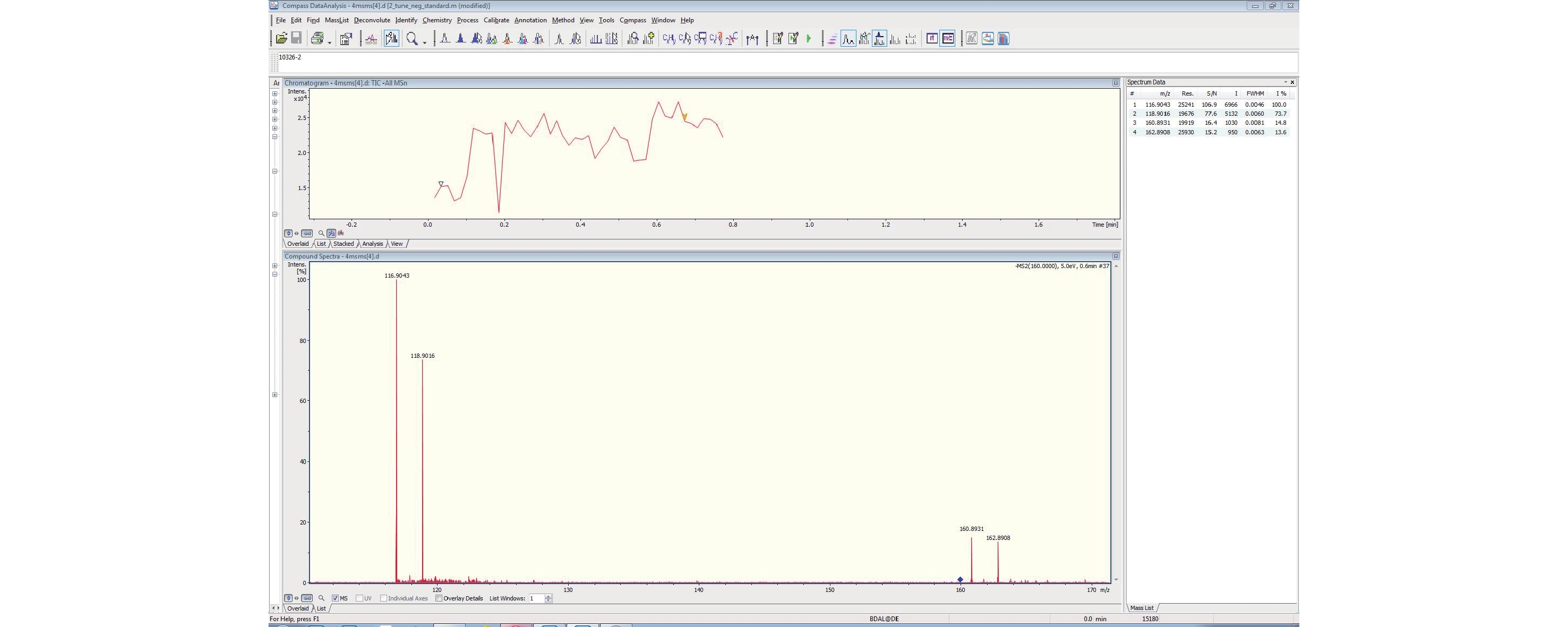 Cosine similarity/%二氯乙酸 126.9348 126.9345 0.0003 82.9453、84.9424 98.0 三氯乙酸 160.8931 160.8949 0.0018 116.9056、118.9026 99.2 -