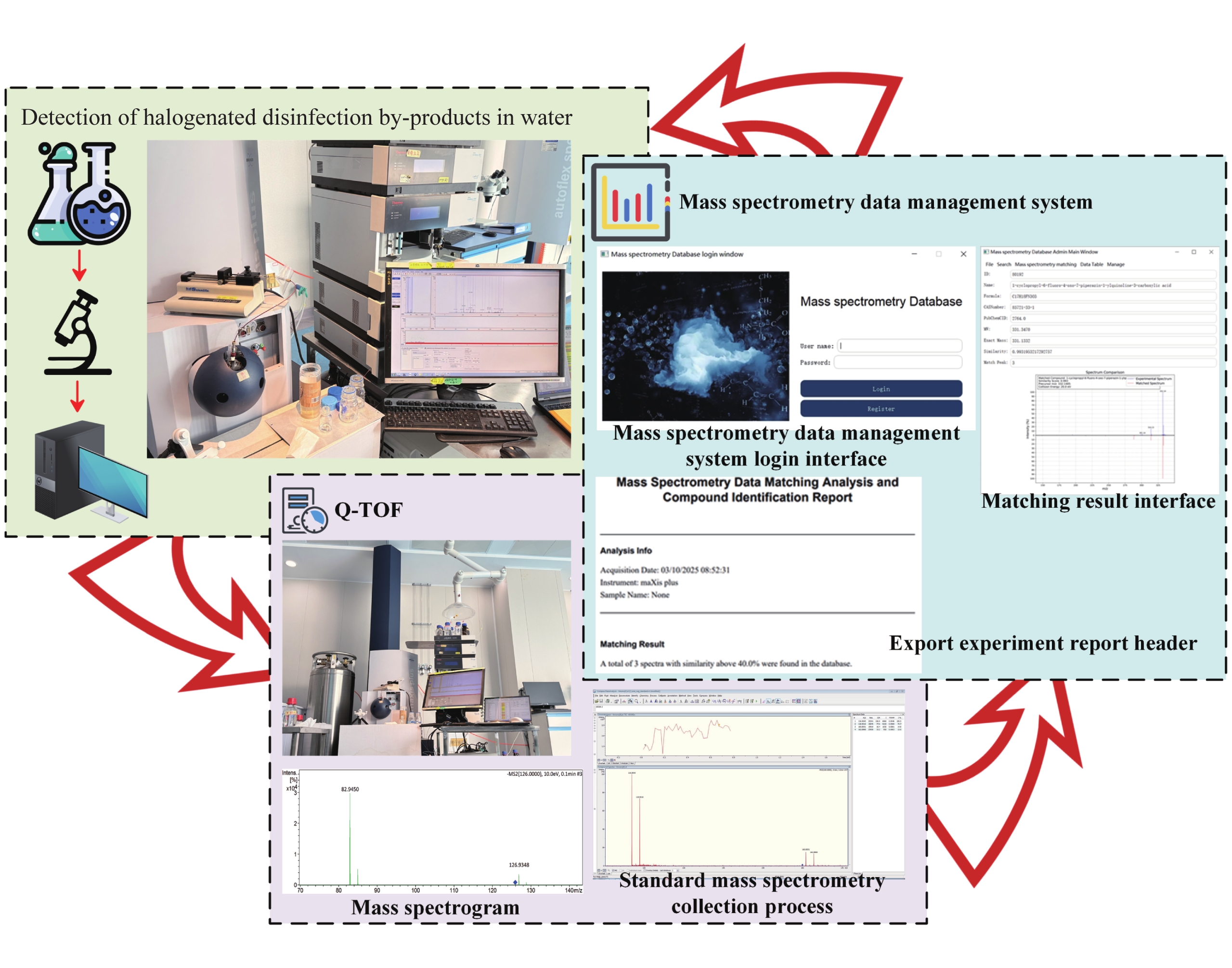 本工作针对水中卤代消毒副产物的分析需求,通过整合开源数据库与实验室测得的标准品质谱数据,构建了一款针对高分辨质谱数据的综合型质谱数据管理系统,涵盖数据存储、查询、匹配和结果展示等功能。在系统开发中,重点解决了数据存储和匹配算法的准确率问题。实验验证表明,该系统在卤代乙酸非靶向筛查中表现优异,能够准确识别复杂水样中的目标化合物。另外,通过引入余弦相似度算法,显著提高了匹配效率,为非靶向筛查技术提供支持。